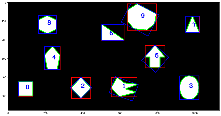 Now we’ll consider another method called minAreaRect, which calculates the rectangle enclosing the contour with minimal area.